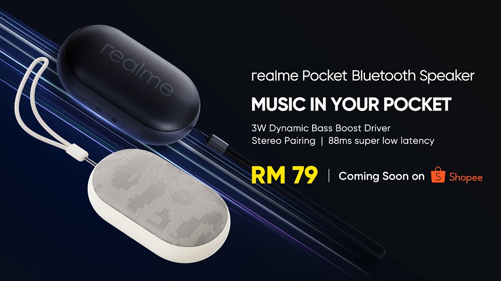 蓝牙音箱的外形是椭圆形设计相当特别,支持3W Dynamic Bass Boost Driver和Passive Bass Radiator,拥有88ms的超低延迟,内置的600mAh电池可以播放6小时的音乐,如果有两个realme Pocket Bluetooth Speaker还可以同时连接播放呢!这款音箱有两种配色,Classic Black和Desert Grey,售价RM79(即将开卖)