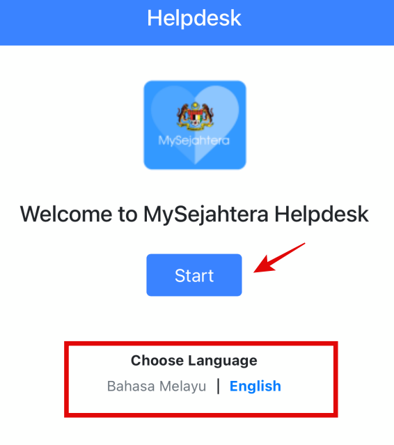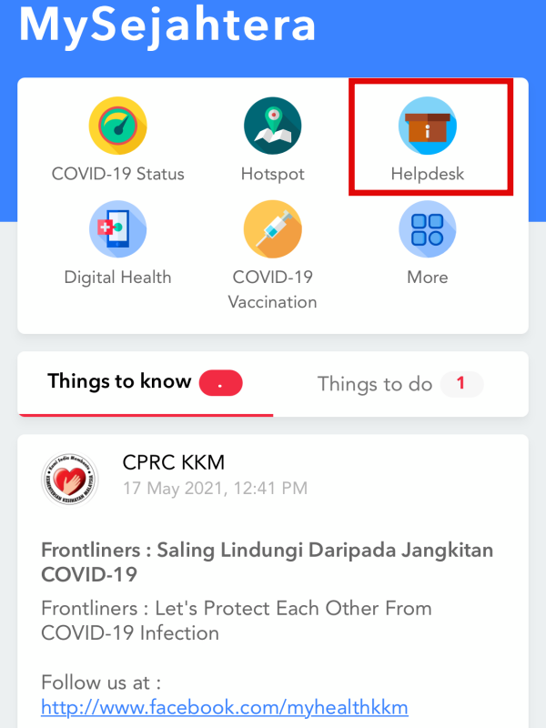 步骤1 打开MySejahtera App,然后点击Helpdesk