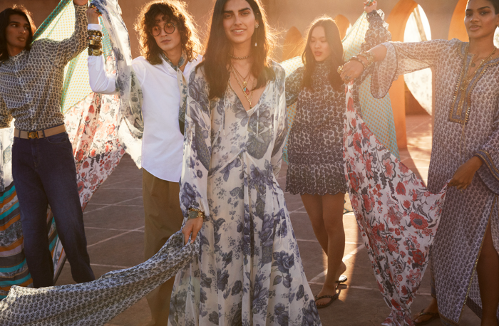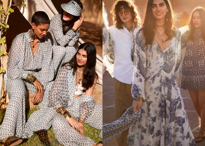 既是和印度设计师合作,注定这系列有着浓郁的异域风情喽!以「Wanderlust」为主题,这系列风格充满了绚丽和色彩浓郁的印花,剪裁也是飘曳轻盈,里外都散发着夏日度假的休闲气息,对于因为疫情困在家的全球人们来说,这何尝不是一种另类救赎呢?