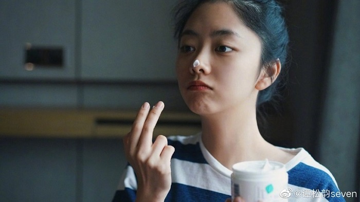 短脸短中庭,皮肉包裹感好,脸长脸宽几乎1:1,是属于短圆脸加头包脸,看起来短短圆圆的。优势在于谭松韵的苹果肌依然很饱满,和小孩不相上下,是非常典型的幼态少女脸。