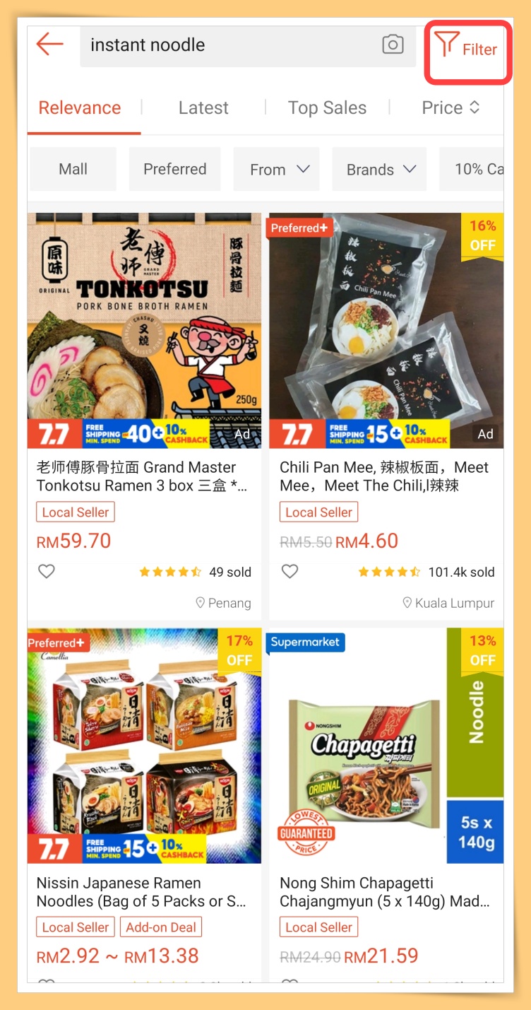 ✅ 搜索要买的产品,然后点击右上角的Filter