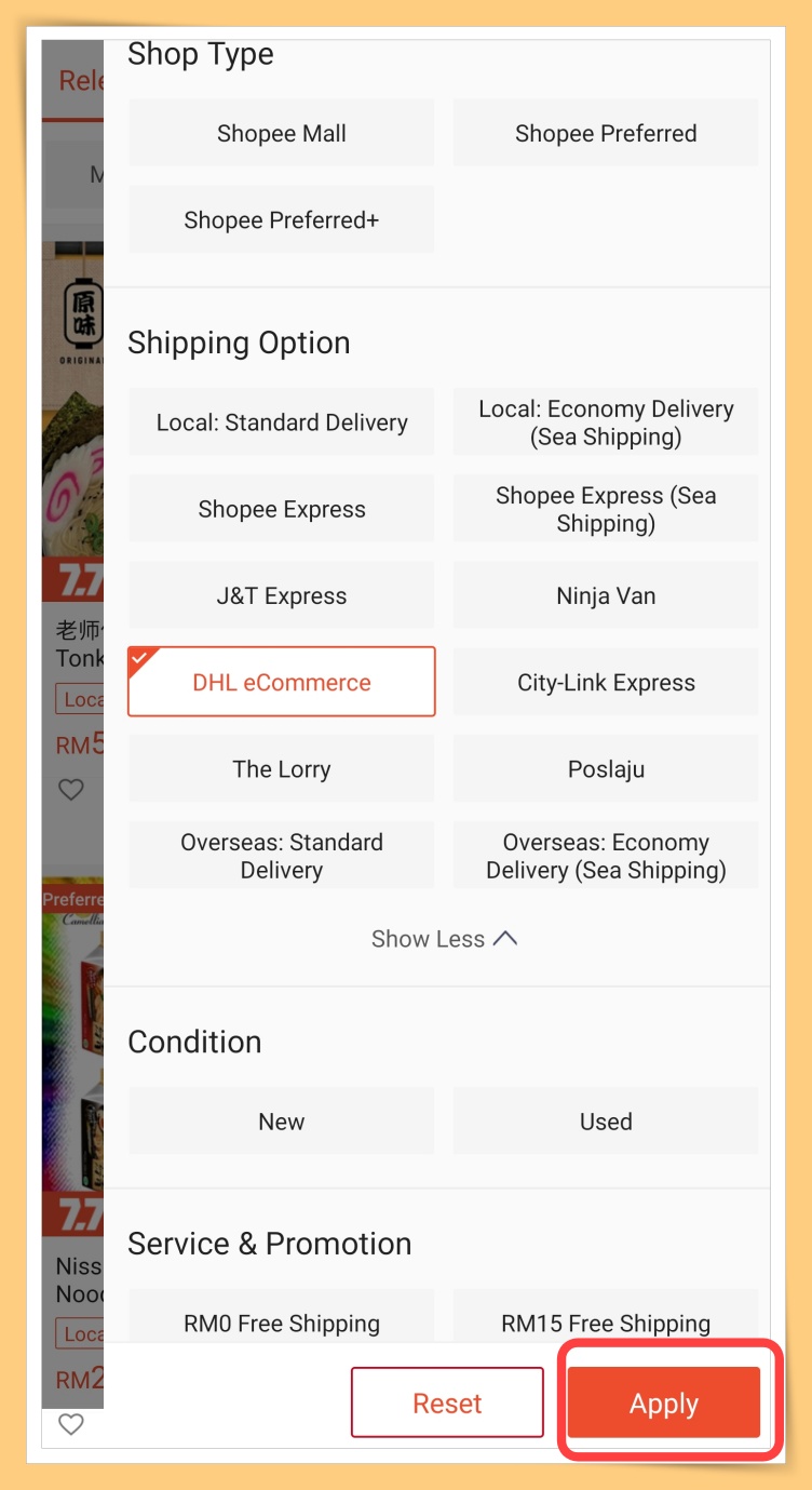 ✅ 选择想要的邮寄公司后,点击Apply就可以了!