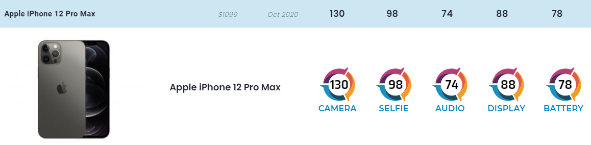 ⭕第4,iPhone 12 Pro Max,电池评分78分