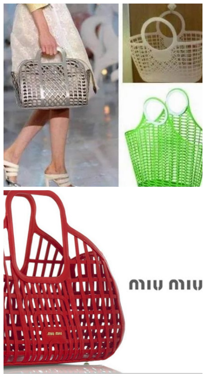 还有菜篮包也经常被喷,无论是Gucci、Miu Miu都有被开讲过,但不得不说这咖菜篮包真的很像我们妈妈去菜市场买菜时用的款式,搞不好她们现在用的,还比这鞋款还pattern一点!(笑)