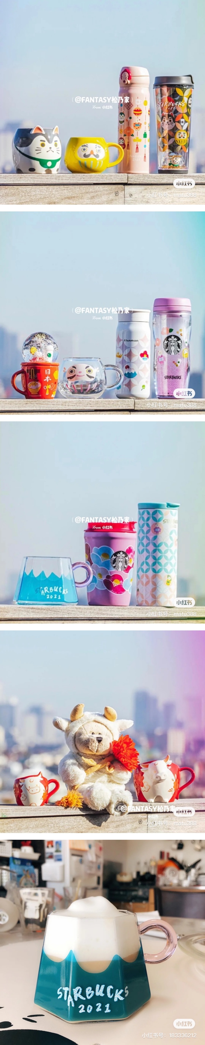 日本星巴克的牛年系列中则结合了传统日本新年元素,除了有牛牛做主角外,还有日本新年的代表吉祥物「达摩」和神社守护兽「狛犬」作为灵感,推出了超级可爱和洋溢日系感的产品!啊啊啊!真的每个都好想要啊!