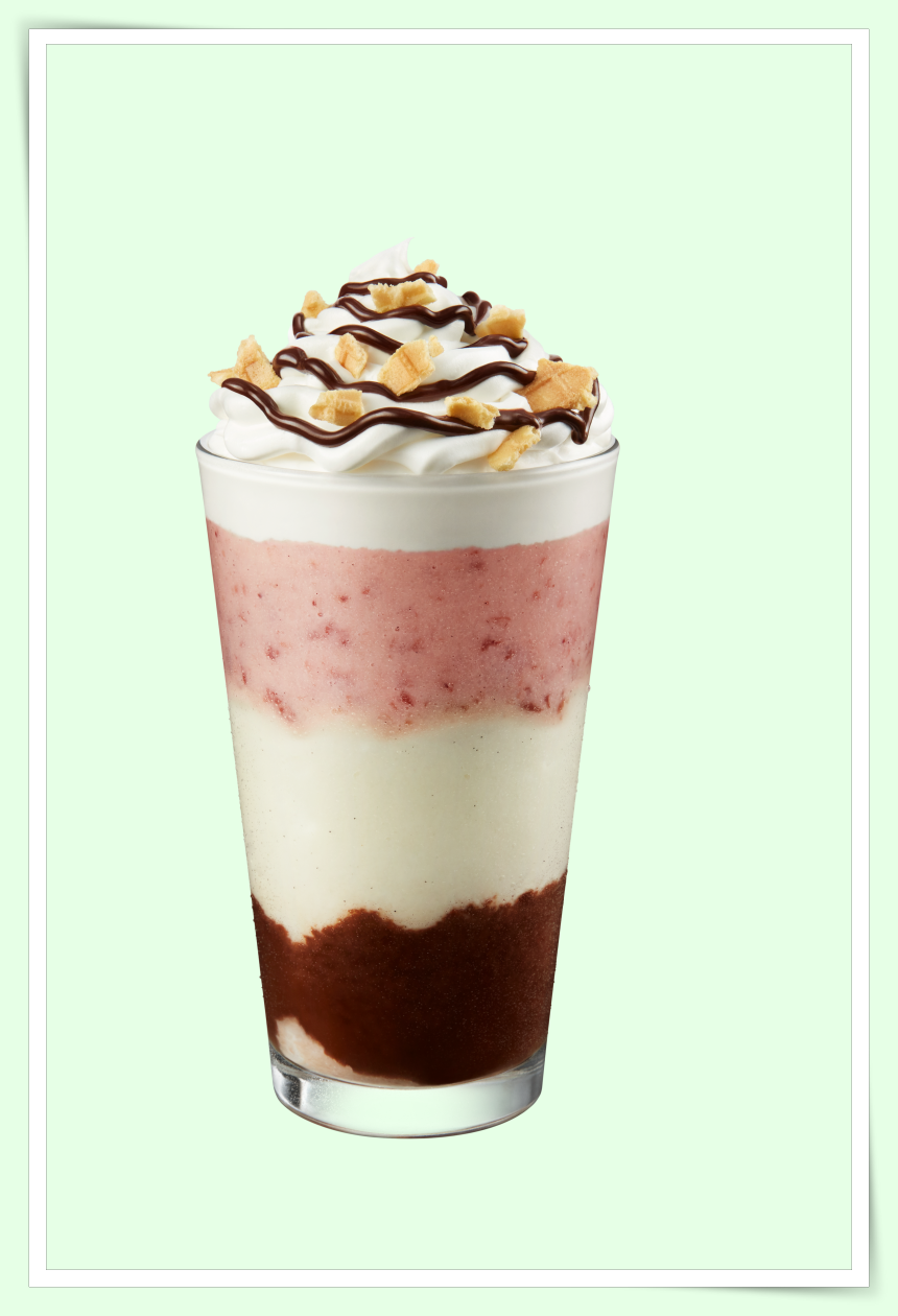 喜欢口感丰厚的可以来一杯Neapolitan Frappuccino, 这个由巧克力、草莓和香草3种口味组成的新饮料,一口喝下去就能感受到甜、酸和一股香味,这一杯绝对是女生们最爱的冰沙饮料,也很适合打卡哦!