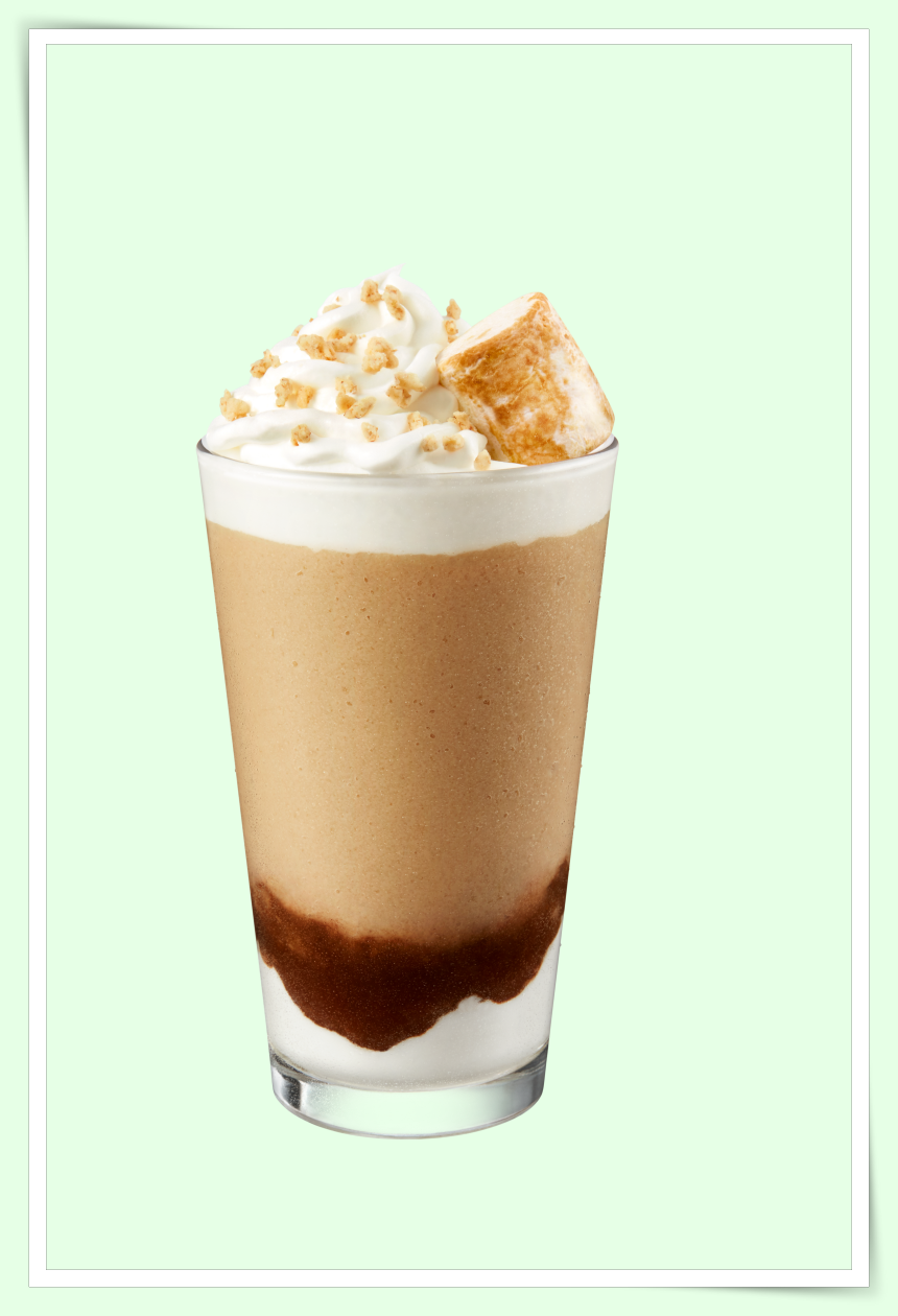 喜欢挑战新口味可以点这杯S’mores Frappuccino,香草糖浆、摩卡酱、咖啡冰块和牛奶混合在一起,夹在一层层棉花糖鲜奶油之间,还撒上全麦饼干和松软的烤棉花糖,甜而不腻的口感棒棒哒!