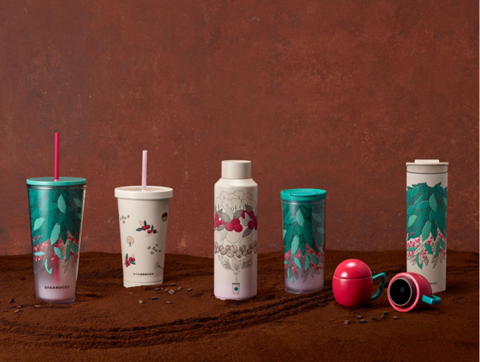 这一次Starbucks推出的饮料杯设计没有走浮夸或是浪漫,而是在叙述品牌小故事。在各种水杯上完整描绘了「咖啡豆到杯子」的故事。所以和Starbucks最有关系的咖啡树、咖啡豆、植物等细节都成了这些水杯水瓶的特色。而且为了实现可持续性发展,部分的产品都采用了可重复使用的咖啡渣、回收塑料制成,鼓励大家重视环保,也希望像Starbucks这样的大企业要好好做榜样才行啊~
