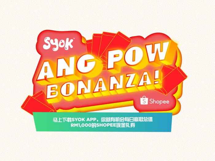 话说那么快,新春就快要来临啦!SYOK 即将在 1 月 24 日至 2 月 12 日期间,透过 《Syok Ang Pow Bonanza》推出全新竞猜活动,并且还会送出高达 RM 15000 的 Shopee 现金礼卷啊!还等什么赶快记下日期,准备来参加啦!