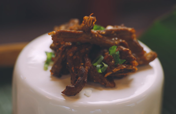 来到泰雅族的东岳部落,其中一道很著名的美食就是飞鱼。世居山林的泰雅族传统上没有食用飞鱼的文化,但由于东岳部落很靠近粉鸟林渔港,因此这里的泰雅族人就能取得渔获,加上自己原本的料理特色,将飞鱼的融入了自己的饮食文化。 泰雅族人会将飞鱼经过长时间的烘烤后,再用青辣椒爆炒,再配上竹筒饭,令人食指大动。