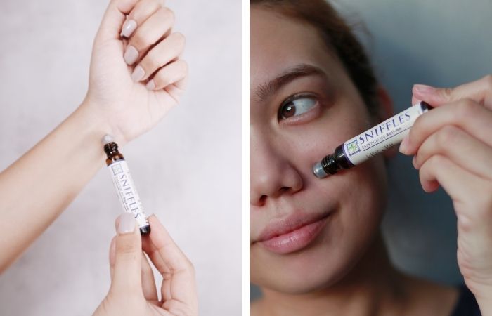 可以涂抹在鼻翼两侧的脸骨上位置,也能滚在太阳穴、眉毛之间、耳垂后面、颈后和手腕处。睡前或醒来则将油涂抹在手掌上,轻轻搓揉手掌,然后罩在鼻子上深吸一口气。