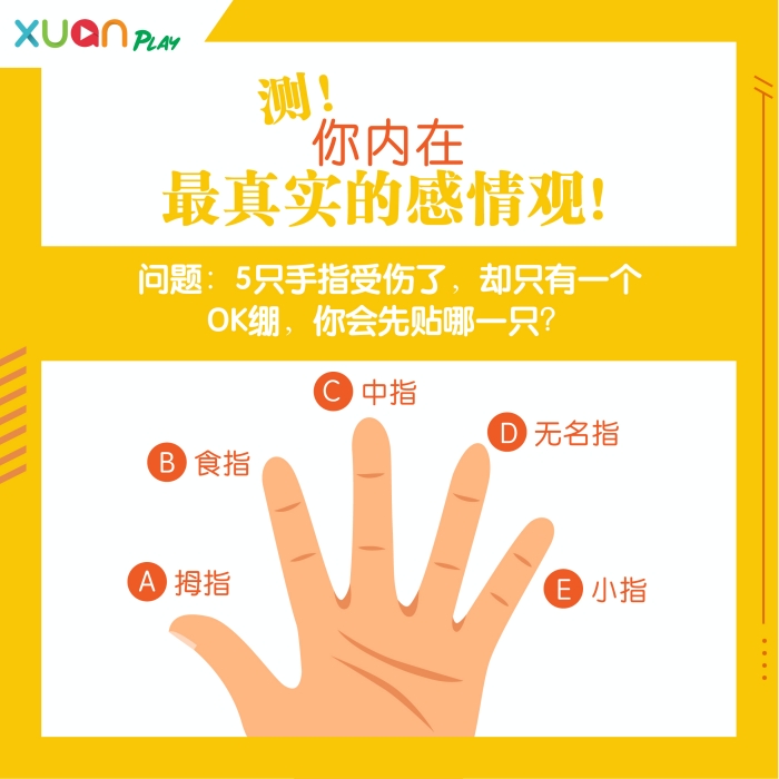 选择小指的你很有个性,同时也是个倔强的人,不过这就是如此与众不同你。在感情里,你喜欢依附着另一半,并视对方为你的生活重心,但要注意太过依赖的话小心对方感到反感,所以自己也要好好找到别的兴趣哦!