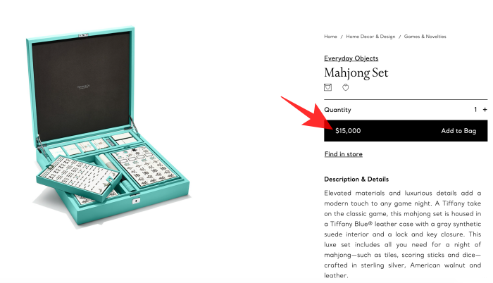 早前爱马仕推出的真皮麻将,单是那RM186k的价钱,就很让人「印象深刻」。这次Tiffany & Co. 也跟上了麻将风,推出价格15000美金,也接近RM62k 的麻将套组。比起爱马仕的价格,Tiffany & Co. 已经稍微可爱很多了,而且以珠宝品牌来定位,覆盖上招牌蓝绿色的麻将,更加有一股清新优雅的风格了!