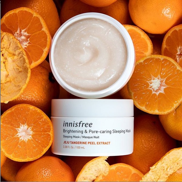 Innisfree的济州岛柑橘睡眠面膜强调美白的同时保湿和修饰毛孔。济州岛柑橘皮所含有的高出4倍的维他命C成分+济州岛有机柑橘水所含有的维他命成分,让你在睡眠中悄悄变白皙。更棒的是这款睡眠面膜还多了一个毛孔护理的功效,能起到收敛和光滑毛孔的功效,让皮肤更加光滑。