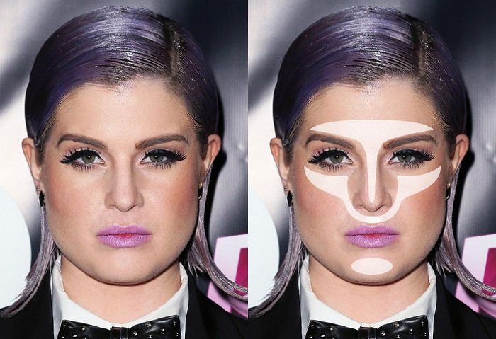 最后要说的就是圆形脸,基本上圆形脸的 contour 方式也与心形脸相似,除了要靠阴影扫在脸部边缘来缩小脸型,也要用光影来拉长脸形,重点是额头位置的 highlighter 要垂直涂上。