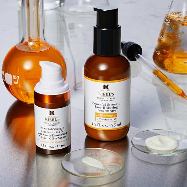 Kiehl’s 推出了全新的Powerful-Strength Line-Reducing and Dark Circle-Diminishing Vitamin C Eye Serum 眼部精华霜,它的专业先进配方蕴含多种强效修护成分:三胜肽複合物、微细透明质酸及 + 10%纯正维他命 C, 临床测试结果显示,可减退眼周细纹、鱼尾纹、浮肿,并可明显淡化瘀蓝色及啡色的黑眼圈。
