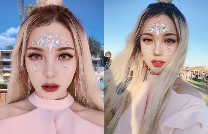 中阶版则可以在眼下或眼睛周遭装饰上闪闪的水钻,注意装饰物的密度千万不能太大,不然反而看起来会不舒服,稀疏的几颗就能给整体妆容带来刚刚好的甜美感。