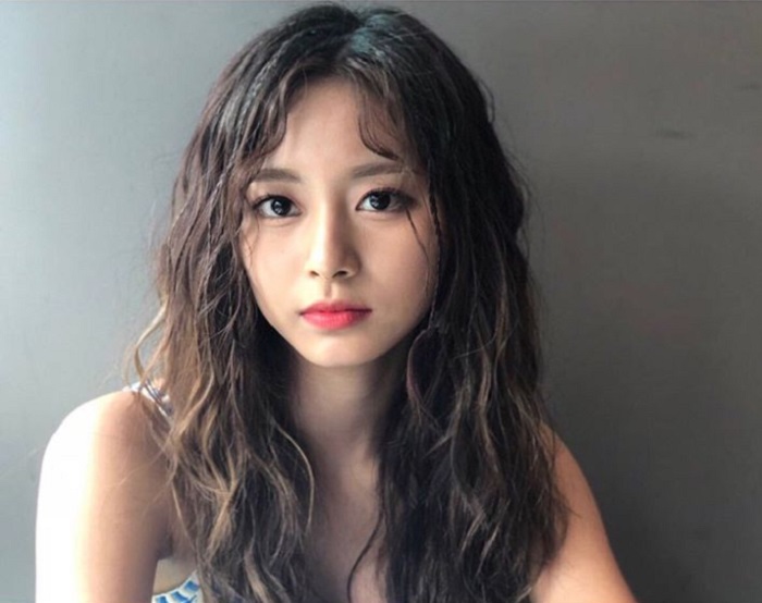 TWICE 的周子瑜发色也是在深咖啡色中加入几撮较浅的咖啡色,搭配捲度,在阳光照射下拨弄头发,发丝的层次光泽感明显。