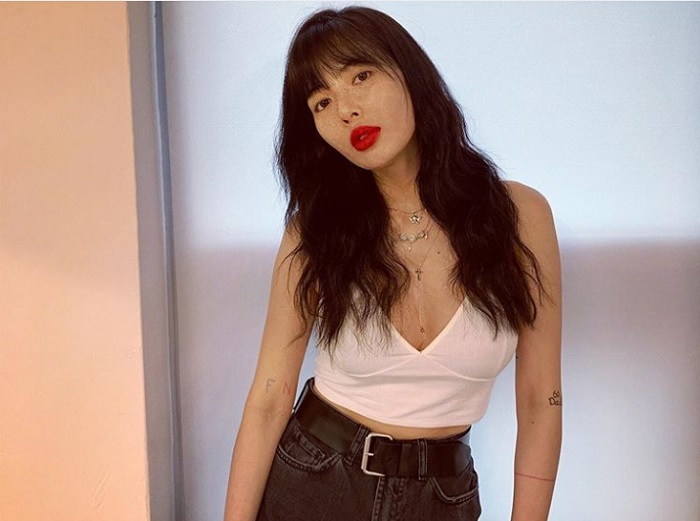 怎么能少了将一头浅色奶茶色染深的泫雅,简直是美呆!肤色也更加白皙,搭配红唇性感指数飙高!