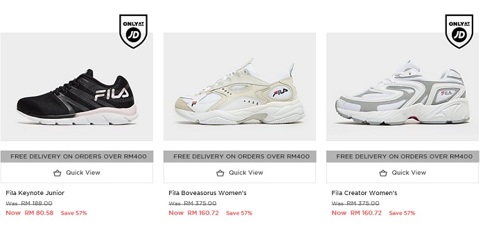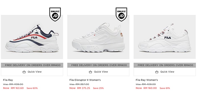 对于一直观望Fila老爹鞋的朋友,这次是个很好的下手机会,在JD Sports下单满RM400就免邮费,赶紧找闺蜜一起同行购物去。