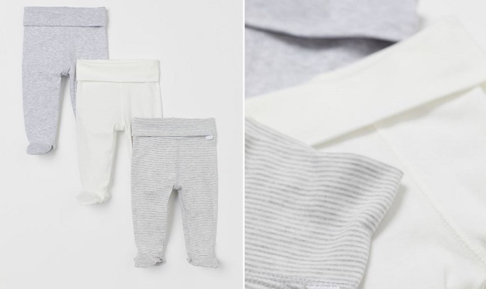 最适合新生儿的衣服其实就是两件式套装,而不是大家所知道的连身包屁衣(Romper)。主要是马来西亚气候的关系,确实不需要给宝宝穿得那么密不透风,Romper比较适合国外的天气。两件式套装的裤子最理想就是一片式厚身裤头(下方参考图),而不是那种勒得很紧的橡皮筋头,这样宝宝喝饱奶之后肯定会觉得肚子被勒得不舒服。