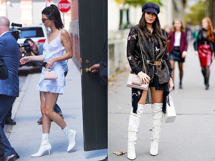 白色靴对于E编来说是很salah的时尚单品,除非在T台走秀或拍MV的造型,不然白色靴造型只会让我联想到电影里到处销售啤酒的女孩。白色靴很容易让双腿显胖,长靴款根本就是灾难单品,自问没有铅笔瘦腿的话,白色靴避而远之啦!!