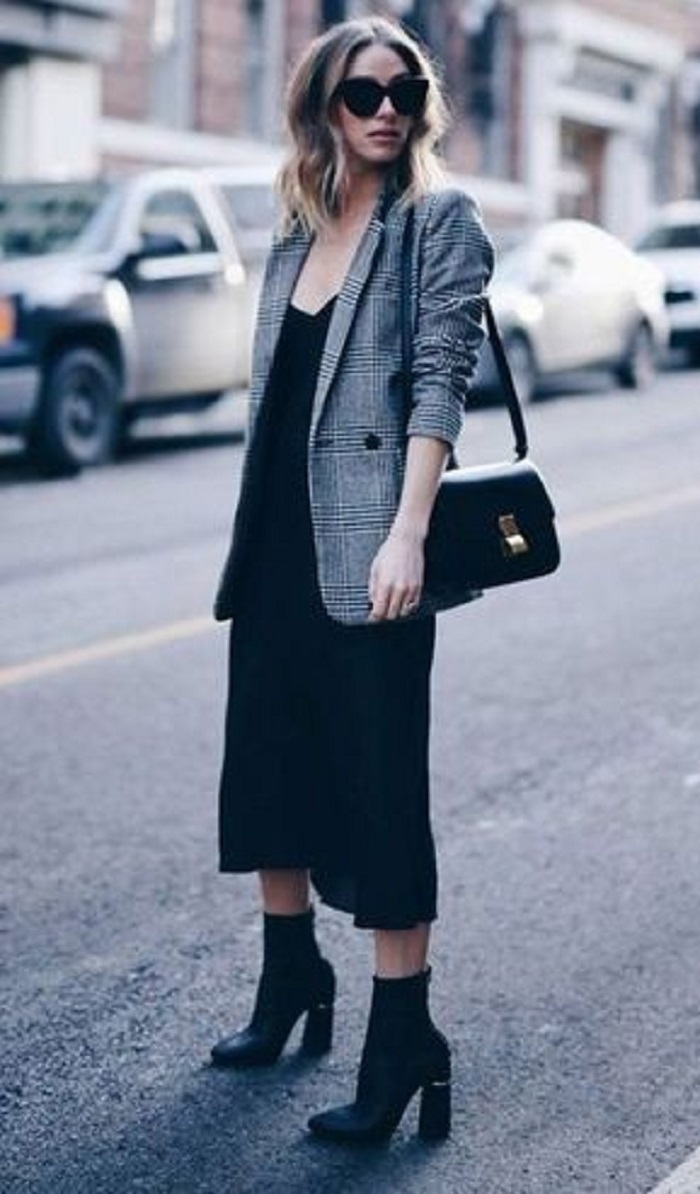 修身的blazer最能修饰身材了!搭配黑色长裙就万无一失啦!