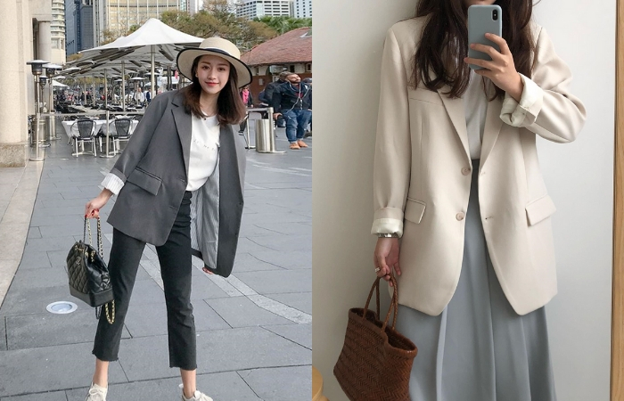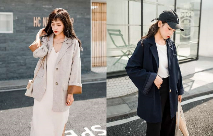 复古宽版的小西装能让整个人看起来超级的温柔又显气质,森女系满满,整套搭配下来休闲又时尚。重点是这种有点oversize设计的元素能让你穿西装穿出小鸟依人,颇有长度的小西装最不挑身形,尤其不满意臀部大腿线条的女孩,这种款式一秒遮掉你的缺点。