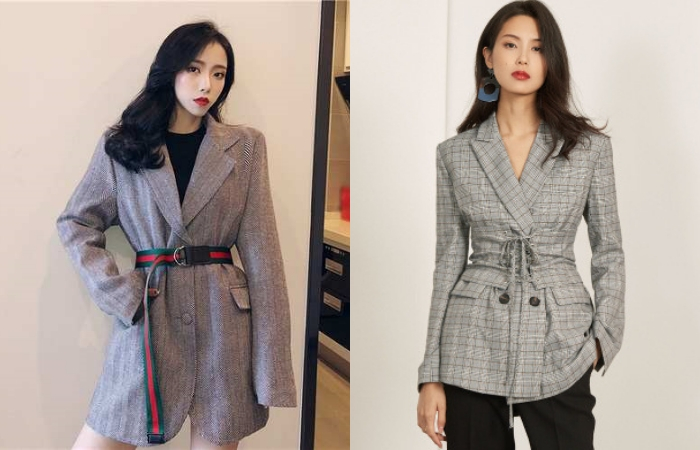 今年初春开始在韩国街头最流行的小西装就是在腰间系带款式,绑带收腰款是韩系小姐姐的路线。复古之余系带设计让整体更加贴合身形,更为修身。如果暂时买不到心属的系带小西装话,可以选择以腰带作为代替。