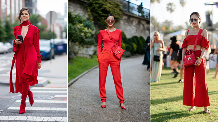 避免过多的红色,一件式的红裙子很飘逸没错,但太多就变成行走的红包了。