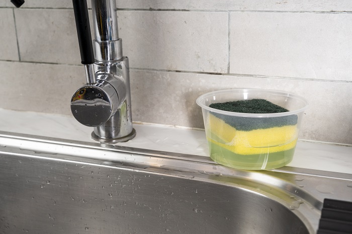 方法1:停止将海绵浸泡洗碗液中