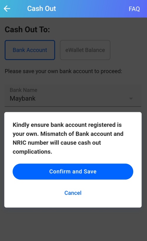 ⭕ 如果要转至银行户口,最低金额是RM10,没有最高金额限制。