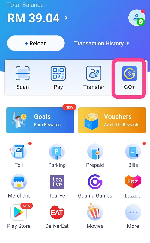 ⭕ 在Touch 'n Go eWallet首页,开启GO+功能,如果你的首页没有看到这个GO+,那么建议更新最新版本。