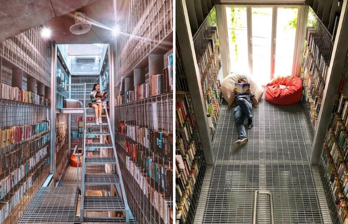 图书馆内有约35,000本书籍,小小的空间里容纳了三层楼的阅读空间。这里展出书籍多为英文为主,当然你也可以携带自己的书籍到这里阅读。图书馆很酷会设定进入规矩,例如不得携带相机、不得浏览社交网站、看戏、下载游戏等。目的就是为了打造一片真正宁静舒服阅读的小天地,最后温馨提醒由于馆内采用空心铁架设计,不建议穿裙来喔!
