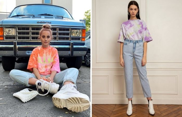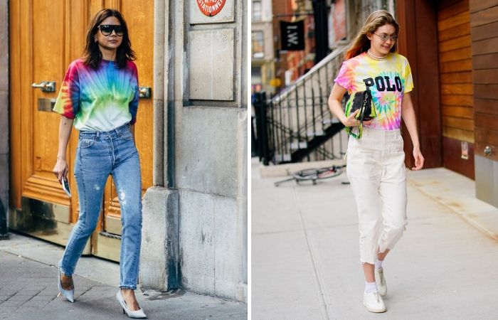 来一件缤纷的扎染印花 T 恤,下半身搭着街头style的牛仔裤,轻轻松松就完成了今年夏天最夯的造型范本。