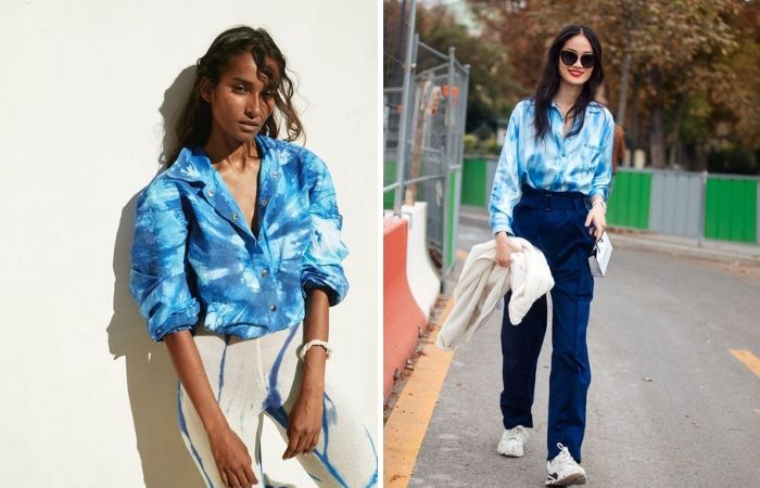 觉得缤纷的扎染印花太高调,那么蓝色系的扎染印花衬衫或许是个不错的入门款,时髦之余也跟着上这季的脚步。