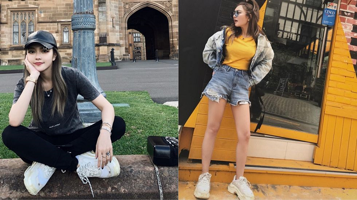 周扬青平常很爱穿球鞋,各种被大家抢破头的超火鞋款她都有,像是照片这款Balenciaga Triple S老爹鞋就是她的心头好。