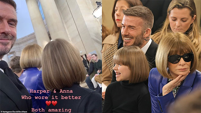 有趣的是这一次的时尚秀,哈七和时尚女魔头Anna主编撞头了!连爸爸 Beckham 也忍不住偷拍两人如“双胞胎”般的背影。是说长大了的哈七婴儿肥去了不少,这样的一款短发反而让她更显瘦,难怪大家都说MM头根本减龄神器,你看快70岁的Anna主编至今仍然留着这么标志性的短发就知道!