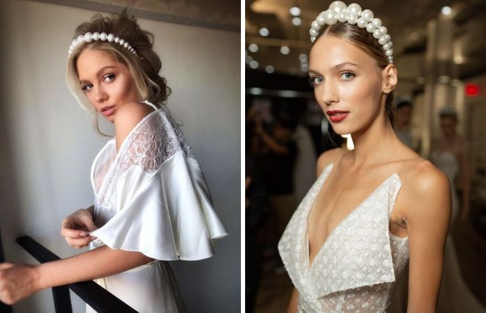 珍珠发箍开始取代珍珠发夹为大热配饰,而这回珍珠发箍不再含蓄走温婉路线,反而是越大颗越显眼越时髦。秀场上更多还采用双排大珍珠,看起来颇具复古风情。这种大珍珠发箍戴在头上也像皇冠,适合作为婚嫁发型饰品,可爱中又显气质。