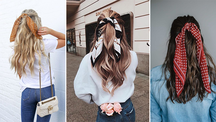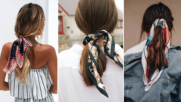 ▼ 丝巾 + 半马尾