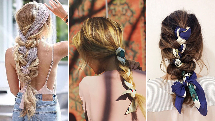 ▼ 丝巾 + 编发