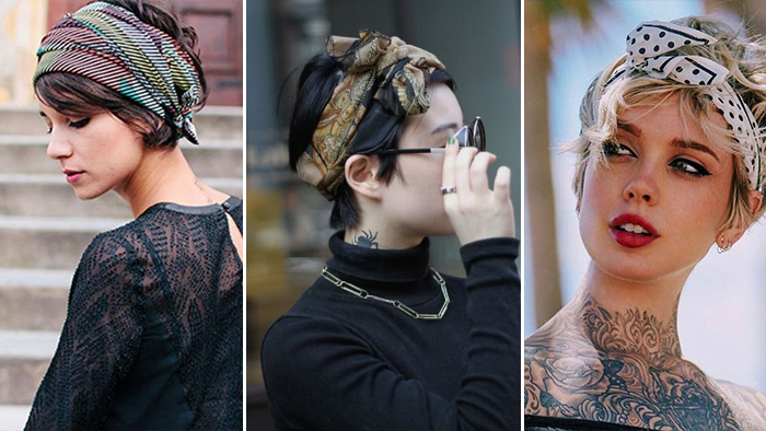 ▼ 丝巾 + 率性短发