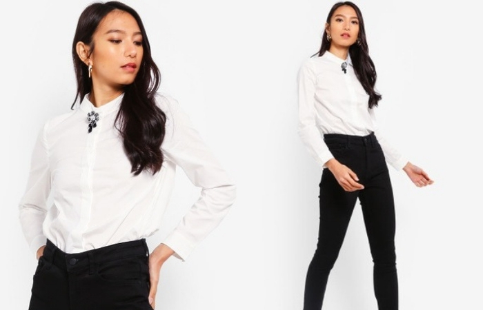 而且这种领子有造型的白衬衫搭上小西装都会升级专业感,上班族真的可以认真考虑多入手些有造型的白衬衫。
