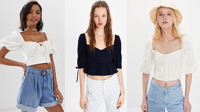 milkmaid blouse 的款式有许多设计,想要和欧美性感挂钩,那就穿上一件短版的上衣搭配牛仔下身,可以显瘦5公斤同时显高10公分哦!