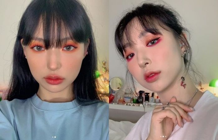 有「单眼皮女孩救世主」之称的韩国女生 Sobong将单眼皮眼睛作为最美的画布,以拉长及上勾的黑眼线为基础,不论是大地色的轮廓眼妆,或是萤光色的鲜艳眼妆,一律轻松驾驭,成为最好的单眼皮模范。