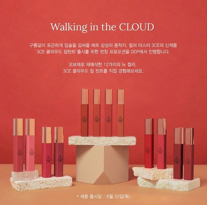 对我来说,唇彩是一个妆容的灵魂啊!即使没有化妆,单靠唇彩就能够让一个人看上去是有好气色的。每个女生的化妆桌上,永远少一支口红。这一次,3CE新推出的Walking in the Cloud云朵唇釉太让人心动了!