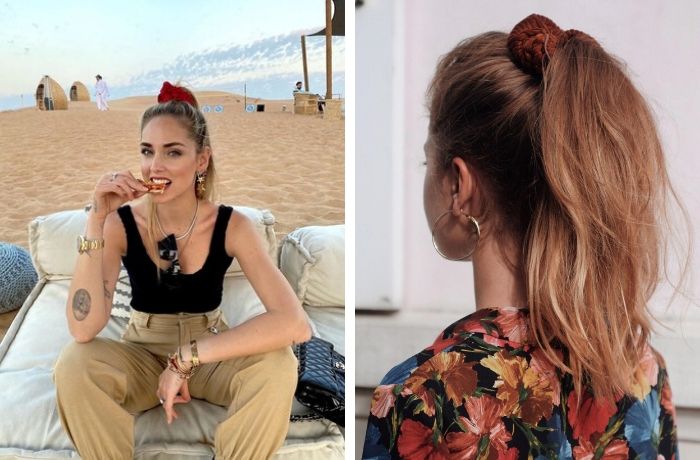 时尚部落客 Chiara Ferragni私下不少造型都是帅气的高马尾,最近在IG就发现她以亮色系的大肠发圈作为穿搭的小亮点。巧思的点缀让她整体时髦感提升,时尚部落客果然就是有两把刷子。