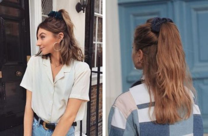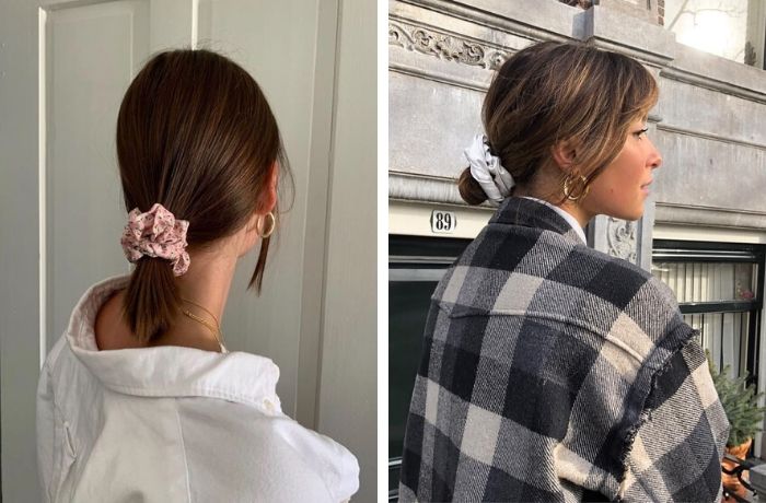 如果要用大肠发圈绑低马尾的造型,建议短发更时尚(太长的头发还是高马尾时尚)。低马尾迷人之处在于创造一种休闲懒散的氛围,随意搭上裙装还是针织衫就会满满法式的风情。