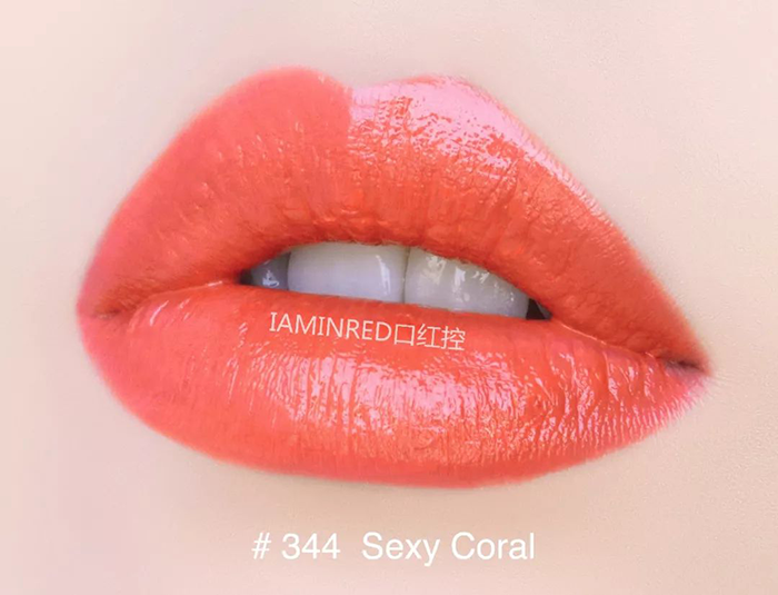 Tip 2: 用水润的玻璃唇釉叠加在基础唇色上面,不仅可以打造水嘟嘟的少女玻璃唇,也可以减弱珊瑚橙中的高饱和度,让黄皮更适合。