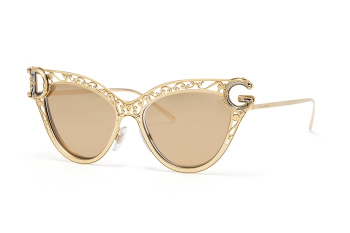 这款金属眼镜以尊贵的金色勾勒出奢华的外型轮廓,配搭同色系却带有不同色调的渐变镜片。以精巧的巴洛克元素设计 Dolce & Gabbana 标志的两个字母,宛若一条迷人的饰带,点缀镜框上沿。